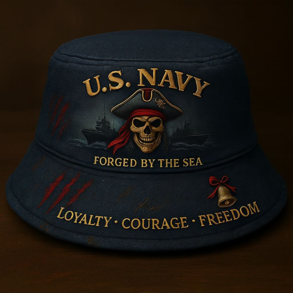U.S. Navy “Forged by the Sea” Pirate Legacy Fisherman Hat – Loyalty • Courage • Freedom ⚓💀