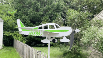 Modeled after the Piper Cherokee PA-28-140, this handmade airplane whirligig transforms a timeless general-aviation silhouette into moving yard art. With a fuselage length of about 22 inches and a wingspan around 20 inches, it’s sized to read clearly in the garden while still fitting naturally into flowerbeds, lawns, and patio planters. The examples shown were customer commissions built from reference photos and have been sold, but your order can be created from your photos or a detailed description—complete with your preferred paint scheme and N-numbers. Because each piece is handmade and the design is continually refined, no two are ever exactly alike; yours will be closely similar, but never an exact duplicate. Most customs take about two weeks to complete and ship.